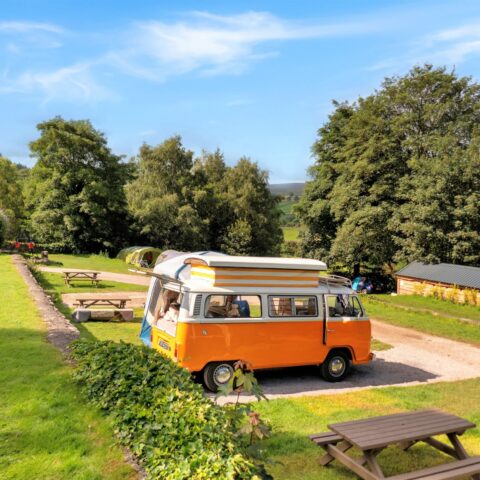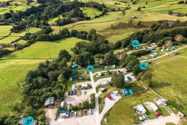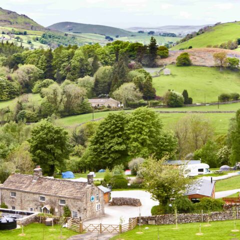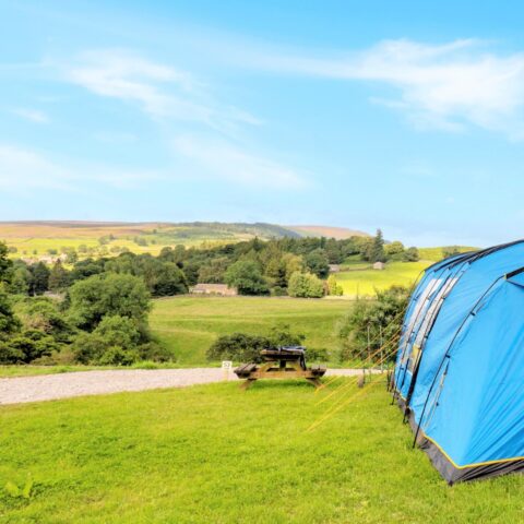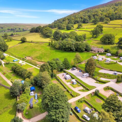Spacious electric pitches set into the hillside with beautiful Yorkshire Dales views.
