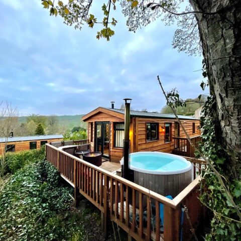 Five individually designed timber glamping lodges with private hot tubs, each offering privacy or sweeping countryside views, all featuring award-winning interior design for true relaxation.
