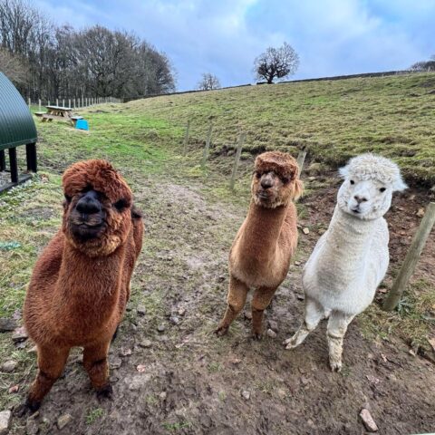 Calmly roaming around their paddock and grazing on the grassland, Jack, Dougie and Alfie make up our family of alpacas. Laid back and enjoying the countryside, relaxing is what they do best, how we like it to be for our guests!