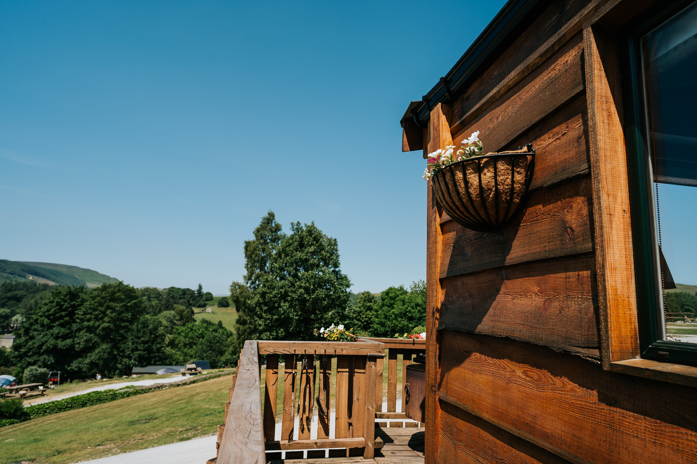 Nestled at the highest point of our site, you’ll find our Shepherd lodge, its wrap-around decking offers an idyllic setting to soak up the warm rays of the late evening sun. Your hot tub is conveniently positioned next to the lodge, providing a secluded retreat where you can unwind while still indulging in awe-inspiring views that surround you.